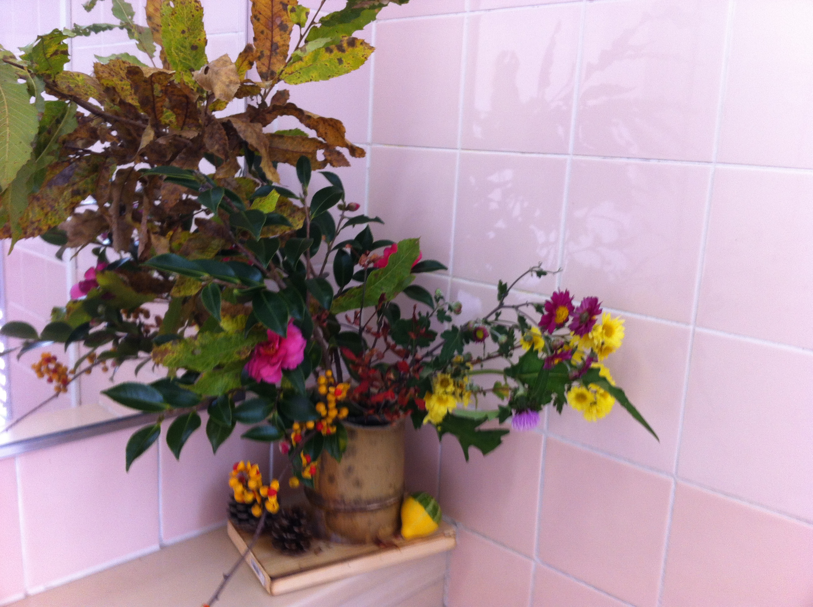 さて、トイレ、凄い生け花ですね。